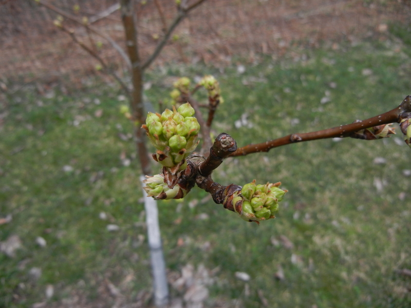 With all the warm weather of late, as well as the practically non-existent ‘winter’ that just ended, my fruit trees are breaking their dormancy VERY early—frighteningly early. I have kept some records of bloom dates and spring frosts for the past 9 years in our narrow valley here in Willseyville, New York (historically a zone 5 climate), which show that this year the trees are budding out almost a full month ahead of ‘normal’, whatever that is. We generally can expect our last spring frost to come in the second or even third week of May—-7 or more weeks from now! Our house and orchard are sited pretty much at the valley bottom, so if anyone around here is going to get a late spring frost, it is us. For some perspective, while the young foliage of fruit trees is quite cold-hardy, most fruit tree blossoms will be killed with exposure to a temperature of 27 degrees F or less during bloom time. Right now, all the buds are still tightly closed, so are pretty well protected, but after the record heat of last week the forecast calls for a low of 17 degrees tomorrow night. If that happens again even once in the next two weeks or beyond, once the trees start blooming, we won’t be eating any fruit this year.