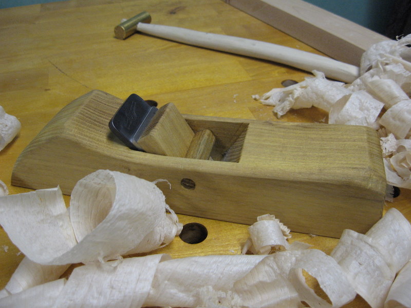 A wood-bodied plane has a whole different level of responsiveness to the lumber being worked than does an iron plane, something that Krenov would wax poetic about regularly in his books. When built successfully, working with these planes is akin to driving a sports car instead of a more utilitarian vehicle that would get you where you’re going, but without the same subtlety and nuance of experience. Some folks actually make them to look as sleek and polished as a sports car, which seems more than a little fancy to me for a tool—in my view, the proof is in the pudding, or in this case in the planing, not in frilly aesthetics. Also, a rough finished body is easier to grip without slipping in your hand. In the end, my first plane ended up in the very good but not great category—for those in the know, it takes a shaving of 4/1000 of an inch, which for me puts it in the class of refined surfacing, but not final finishing, of most of my projects. Not bad for the first time around. After I make a bunch more, I look forward to the day when I can share this hard-won knowledge with an eager young buck like I was back in the day—but he’ll have to pester me for a while first.