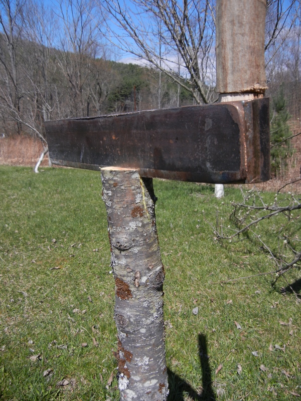If you do find yourself in a situation where you have chosen or inherited a tree that produces poor quality fruit, the good news is that you don’t have to go back to the drawing board, waiting (again) for years while your new tree comes into bearing age. Instead, you can upgrade your existing trees with some simple surgery, incorporating as many new varieties as you like, while retaining the use—and the vigor—of the pre-established root system. The two basic techniques of ‘topworking’ a fruit tree are grafting and budding. I’m going to limit this discussion to the former, as now is the time for grafting here in upstate New York. Specifically, the rest of this post will illustrate one type of grafting, known as the cleft graft, which can be used to radically overhaul an existing tree.